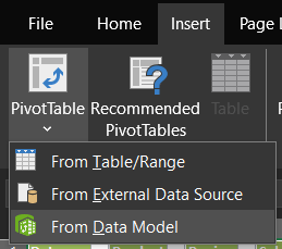 - Go to Insert > PivotTable > Use this workbook’s Data Model.