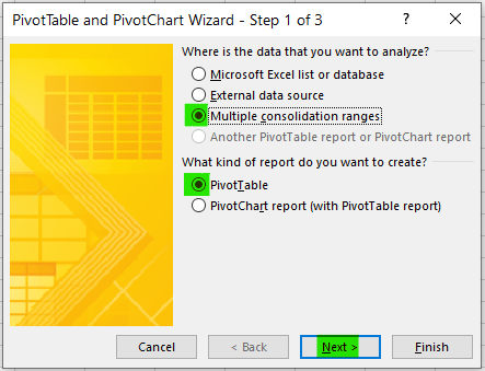 Q1: Can I make a pivot table from multiple sheets without Power Query?
